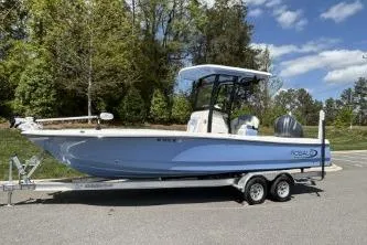 Introducing the remarkable 2025 Robalo 246 Cayman, a stunning bay boat that combines performance and elegance. With an overall length of 24.5 feet, this vessel boasts a sleek modified Vee hull made from durable fiberglass, ensuring a smooth ride across the water. Powered by a robust 250 hp Yamaha engine with only 10 hours of use, it promises exhilarating adventures and reliable performance. The 246 Cayman is designed for versatility, making it perfect for both fishing excursions and leisurely cruises. Its thoughtful layout and modern features enhance the on-water experience, providing comfort and convenience. Whether you're navigating coastal waters or enjoying a day out with friends, this boat is sure to impress with its quality craftsmanship and attention to detail. Embrace the thrill of the open water with the 2025 Robalo 246 Cayman, where every journey becomes a memorable adventure.