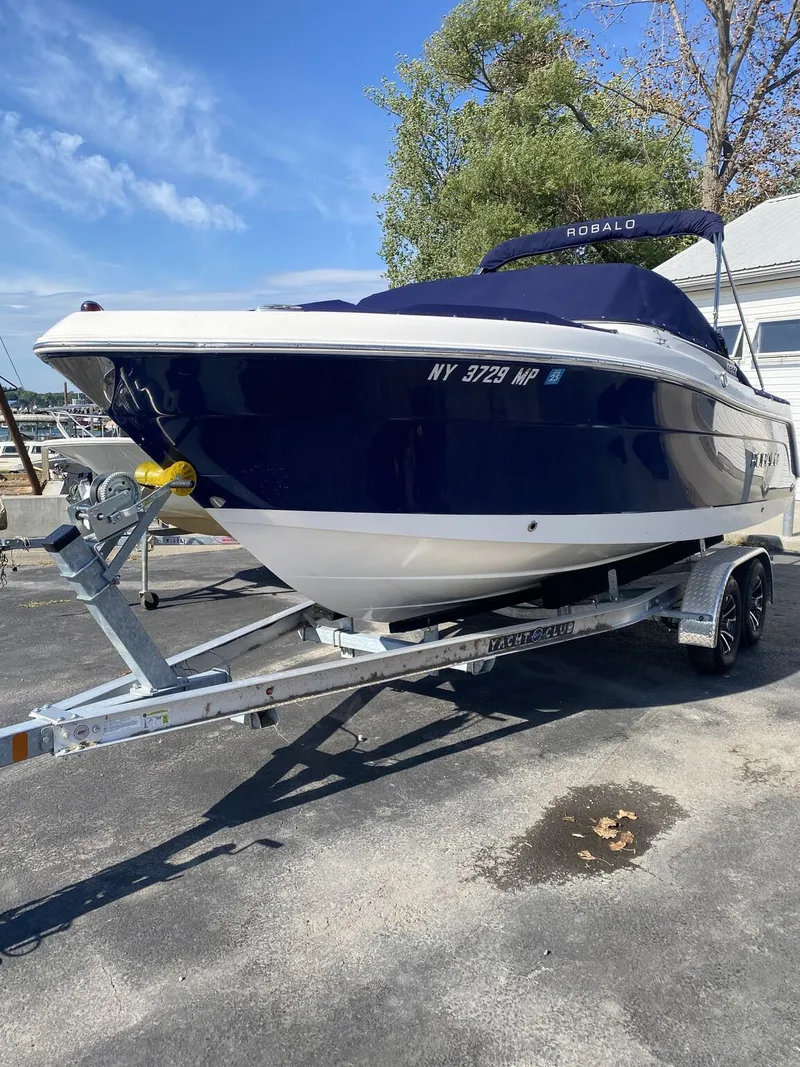 Lightly used 227 Robalo only 104 hours on the Yamaha 200hp engine, Biscayne blue, Sand interior, Cockpit, Bowcover and bimini, Ski tow Head compartment, 7' Garmin, Beachweave snap in flooring Bow cushions, Bluetooth Stereo, Raw water washdown, trim tabs, infloor storage with built in rod storage, available trailer Yachtclub aluminum tandem axle trailer $6500