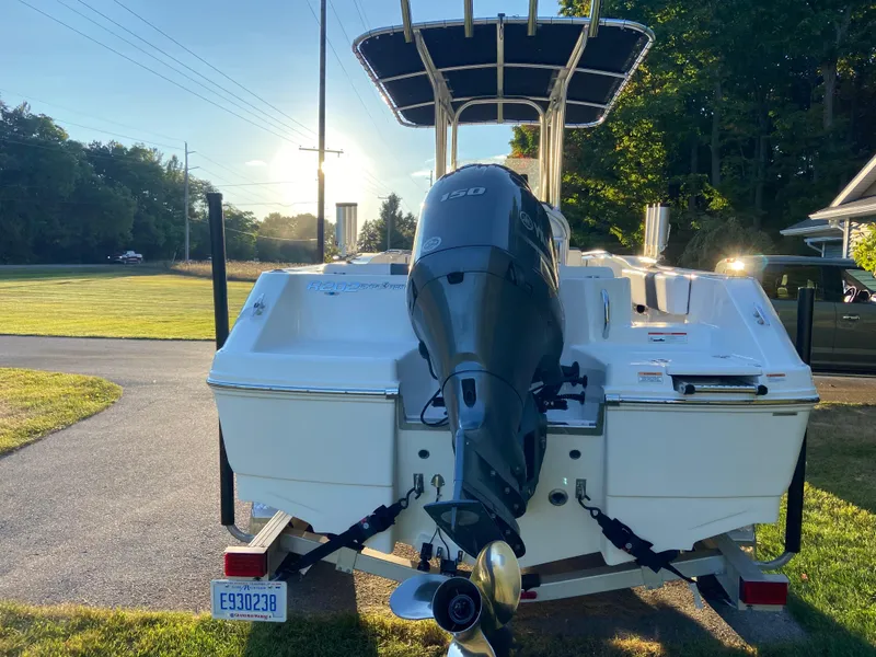 Yamaha 150 4-stroke Coyote Tandem Axle Trailer White Hull Cockpit Upholstery Color: Harbor Grey T-Top Anodized Aluminum Steering Wheel w/ Control Knob Dual Battery Setup w/ Crossover Switch Porta Pottie Cockpit Table w/ Dedicated Storage Tilt Steering Helm