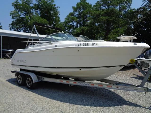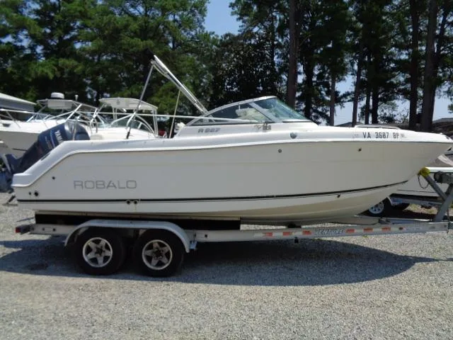 2009 ROBALO R227 DUAL CONSOLE WITH A 2009 YAMAHA F250 FOUR STROKE OUTBOARD 507.5 HOURS AND A VENTURE ALUMINUM BUNK TRAILER, INCLUDED OPTIONS ARE SS PROP, BINIMI TOP WITH BOOT, PULL UP CLEATS, FRESH WATER SHOWER, FOLDING AFT SEAT, SKI TOW, VACUFLUSH HEAD, TRIM TABS, RAY MARINE A 70 DEPTH/GPS AND FISHFINDER, VHF RADIO, ENGINE IS IN GOOD RUNNING CONDITION AND ALL ACCESSORIES ARE WORKING