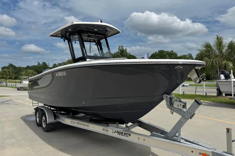 This 2023 Robalo R250 center console is powered by twin Yamaha 200's with 189 HOURS. It's loaded with electronics including dual Simrad 9-inch GPS/Fishfinders, Simrad auto pilot, Simrad VHF, and more! The boat is loaded with standard features including bow seating with storage under the cushions, fold down aft bench seat, easy access livewell, a Yamaha digital gauge, and more! Come see this boat at our Supply, NC location or call 910-755-7900 for more information.