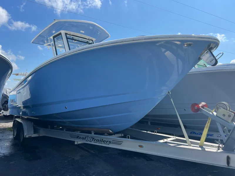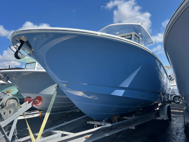 This Robalo R250 Center Console is an incredible boat that will fulfill almost any desire whether it be running offshore fishing or even fishing in the bay to entertaining friends and family. It is powered by Twin Yamaha 150 HP 4-Strokes w/ Electro Hydraulic Steering & Digital Throttle & Shift! The boat is super comfortable and has a wonderful layout. It also has a Side Dive Door for easy boarding. The seating at the helm is set up and positioned very easy to sit and drive or stand. While sitting you can easily see over the console and reach the steering wheel. The rear cockpit has a ton of space and a very large fold down bench. The rear bench also lifts up to provide huge access to the bilge pumps and other equipment in the bilge area. The hard top is also very large giving you great shade. This boat has a windlass thru the hull for easy anchoring. It also has a Head w/ Overboard discharge, underwater lights, Stainless anchor, & Seadeck Helm Mat.