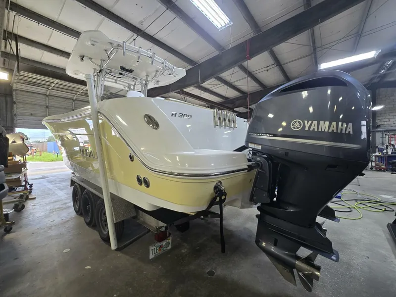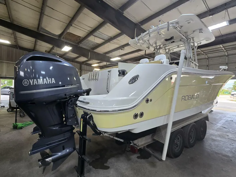2008 Robalo R300 powered by twin 2021 twin Yamaha F300 Four Stroke Engines with 394 hours! Twin Simrad NSSEVO3's Chart plotter, Depth sounder with Halo 20+ Radar, ACR Remote Control Search Light, Minn Kota Riptide I-Pilot with 112 lb thrust, 2016 Owens & Sons Marine, Inc. Aluminum Triple Axle Trailer.