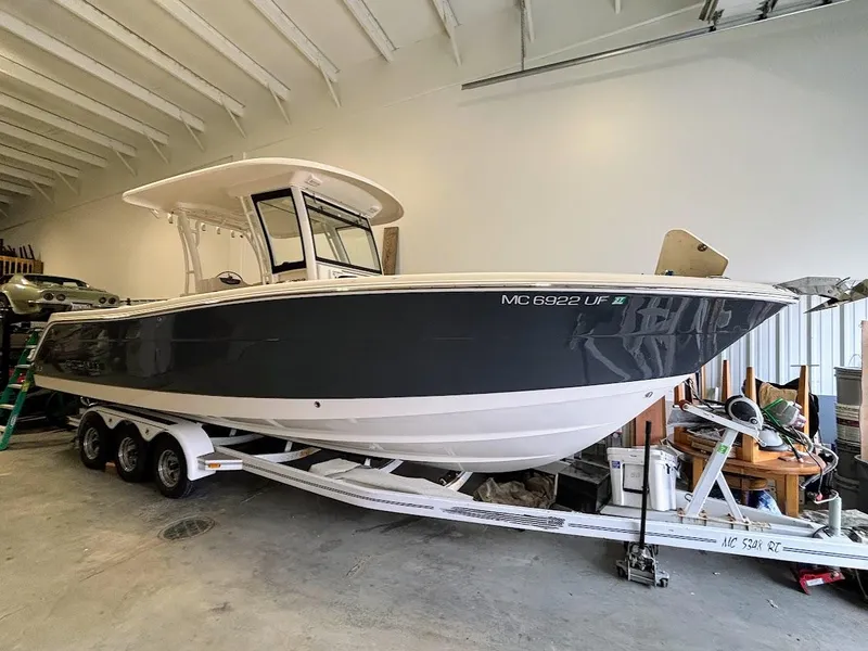 Because all fishing boats are not created equal, you can trust in Robalo to take the guesswork out of buying a center console. All models offer unmatched performance, tournament-level appointments, and an interior layout with classic style, quality and function. No matter which center console you choose, nothing delivers like a Robalo. This single owner, all freshwater, lift kept and low hour R302 is primed and ready for the 2025 boating season. Powered by a pair of Yamaha F300XCA Outboards with only 135 hours of run time, she's been used lightly and fished minimally. A great option for entertaining, or for a sunset cruise, the Robalo R302 certainly will not disappoint.
