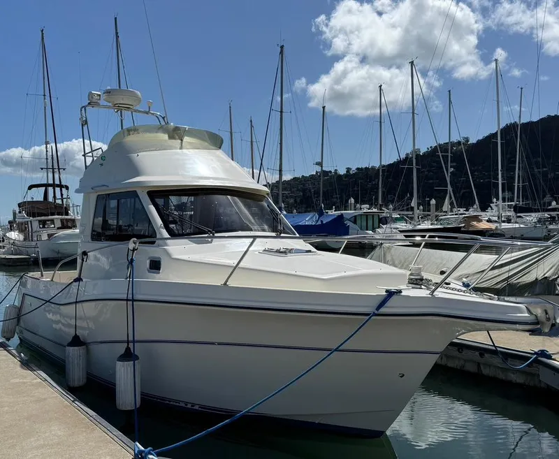 "FISH" is a true, capable small yacht that offers sea keeping ability only found in larger vessels. This 800 series is the preferred flybridge model.