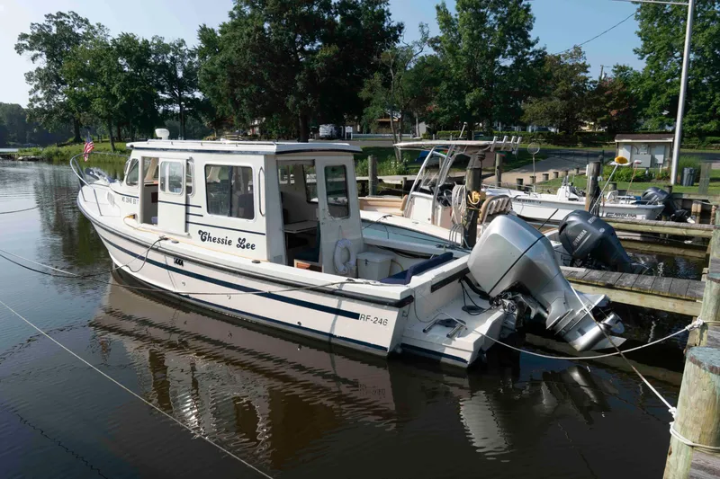 The Rosborough RF-246 Sedan Cruiser (HSV) High Sided Version, is a durable, well-built boat designed for comfortable cruising and handling rough conditions. It offers a spacious cabin, a functional cockpit, and features like pilot doors for convenient line handling and ventilation. Online reviews suggest it's a popular choice for couples and those who enjoy extended cruising in various conditions. This one is a high sided version with a custom package that includes a Honda 225 installed on the hull extension offering additonal flotation & stainless steel prop. CALL THE LISTING BROKER FOR MORE DETAILS.