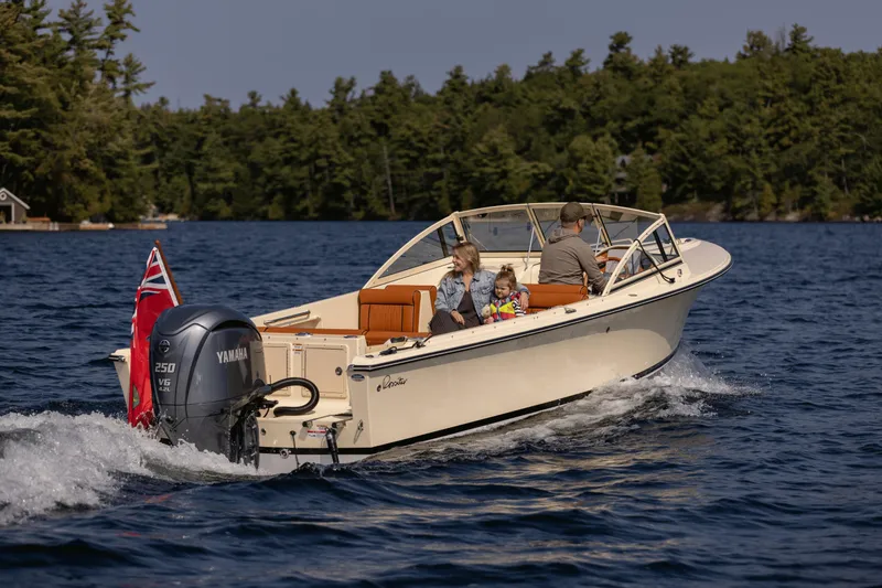 The Rossiter 23 is a standout in today's market, blending classic Downeast styling with modern construction, thoughtful ergonomics, and premium performance. This factory-fresh 2026 model, powered by a Mercury 250 outboard, delivers a smooth, confident ride whether you're cruising inland lakes or exploring coastal waters.