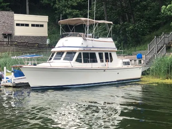 'NOMAD' is a freshwater 36�´ Sabreline Fast Trawler with many custom features and recent upgrades. She has 1900 hours on her Twin 250 hp Detroit diesels. She has a Northern Lights generator, two NEW Dometic A/C units, Nobetec Radar, 1 Nobeltec� Cetrec Hydraulic autopilot, 2 VHF's, depth sounder, flybridge Bimini top & helm cover, custom light beige interior, two single berths in the aft cabin and v-berth forward, two heads and spacious galley up. Her current owner� regrets that at this time in his life he has to give her up. He has enjoyed cruising aboard her.� Nomad has spent her life on Lake Erie and Lake Ontario. This vessel offered at a superb value.
