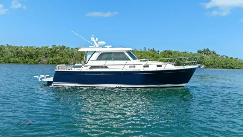 2013 38' Sabre 38 Salon Express "Five O'Clock" for sale, showcasing timeless Downeast style and exceptional performance. Powered by twin Volvo Penta IPS 400 engines with pod drives, she offers smooth, quiet operation, excellent fuel efficiency, and effortless joystick docking. The owner has taken meticulous care of this vessel, keeping her in top condition with consistent professional maintenance and attention to detail. Her interior features handcrafted cherry woodwork, Ultraleather seating, and a bright, airy salon with large opening windows and elegant finishes throughout. Below deck, she offers a spacious master stateroom, a well-appointed head with a separate shower, and a fully equipped galley with solid-surface countertops and generous storage. The cockpit is ideal for entertaining, featuring wraparound seating and a seamless indoor-outdoor flow through the bi-fold salon doors. Whether you're coastal cruising or weekend hopping, this Sabre 38 delivers comfort, class, and confidence on the water. She's turn-key and ready for her next proud owner.