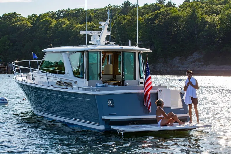 Inside, the salon features twin six-foot settees and a half-up galley designed for comfort, efficiency, and style. Below, a versatile lounge adapts to any need-guest berth, office, or retreat-while the master stateroom offers Sabre's signature warmth with an island berth and generous storage. A flexible utility space under the salon adds even more customization options to suit every journey.