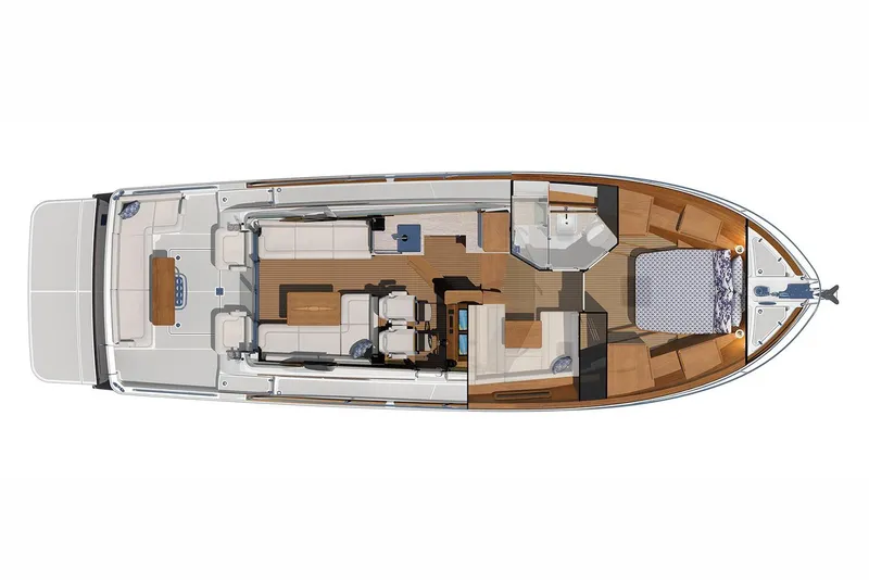 Versatile Layout: The express configuration balances indoor comfort with outdoor enjoyment, featuring a convenient cockpit and swim platform.