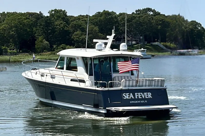 Fastidiously maintained by her original owner. "Sea Fever" represents the perfect blend of Downeast elegance, modern performance, and luxurious comfort. Built to the highest standards, she features timeless lines, exceptional craftsmanship, and the latest in navigation and comfort technology. Powered by Twin Volvo Penta D8-IPS 700 - 550 HP pod drives with joystick control, she delivers effortless handling, a smooth ride, and cruising speeds of 26-30 knots with top speeds up to 33 knots.