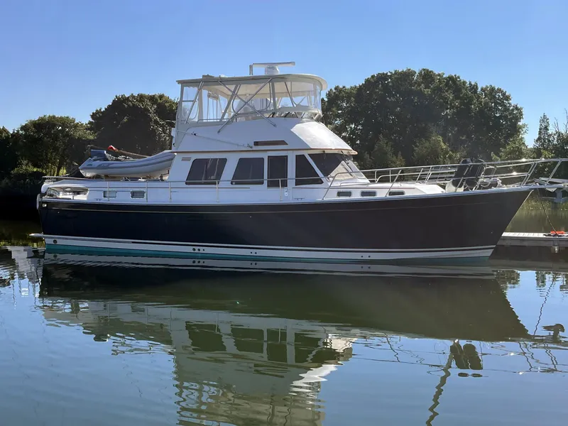 CANDY O - Sabreline 47 The Sabreline 47 was an immediate hit when first launched and 39 of these fine yachts were built. The Sabre quality fit and finish combined with a well-designed semi-displacement hull form provided a yacht quality option to overweight Asian trawlers. Fuel economy at a displacement speed of 9 knots is approximately 1 gallon-per-mile with the option to cruise comfortably at 16 knots when pressed. CANDY O is one of the better equipped 47's with the highly desirable hardtop.