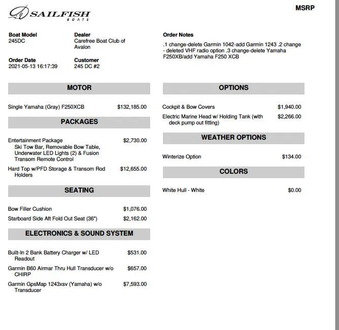 Contact Commodore Bay Marina about 2022 Sailfish 245 DC