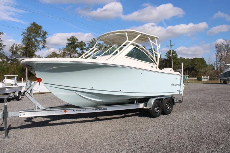 Introducing the stunning 2026 Sailfish 245 DC, a new dual console boat that perfectly blends performance and comfort. With an overall length of 26 feet, this vessel features a robust fiberglass hull designed in a deep vee shape, ensuring a smooth and stable ride even in choppy waters. Powered by a powerful Yamaha 300XCB outboard engine, delivering 300 horsepower, this boat reaches cruising speeds of 30 mph and can achieve a maximum hull speed of 50 mph, making it ideal for thrilling adventures on the water. The 245 DC is equipped with a head for convenience, enhancing the onboard experience. Its thoughtful design and modern features make it a fantastic choice for both leisurely outings and exciting excursions. Experience the perfect combination of style and functionality with the Sailfish 245 DC, where every journey becomes a memorable adventure.