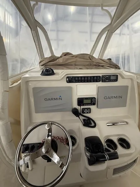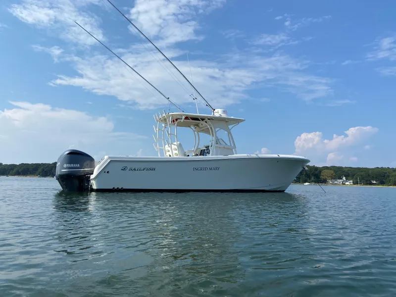 Beautifully maintained 2015 Sailfish 290CC 1200 hours on the Yamaha 300s Engines are dealer maintained Garmin Radar Twin Garmin 12 inch displays TACO outriggers 75 gallon fuel bladder with t-plumbing (no siphoning required) (4) swivel rod holders Deep cycle battery and P/S Hubbell plugs for electric reels New plumbing and additional pump on fish well pump out 225 gal fuel tank Eiasen glass on front and wings This 2015 Sailfish 290CC is a fantastic center console boat perfect for fishing and family outings alike. With a length of 29 feet, it offers ample space and stability on the water. The boat is powered by twin Yamaha 300HP engines, ensuring reliable performance and a smooth ride. It features a spacious deck, plenty of storage, and all the necessary fishing amenities, including rod holders, a live well, and a fish box. The helm is equipped with modern electronics, including GPS, radar, and a VHF radio. The boat has been well-maintained and is in excellent condition.