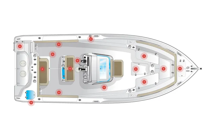 Spacious Center Console Layout: Provides ample room for fishing and entertaining, with comfortable seating and easy movement around the boat.