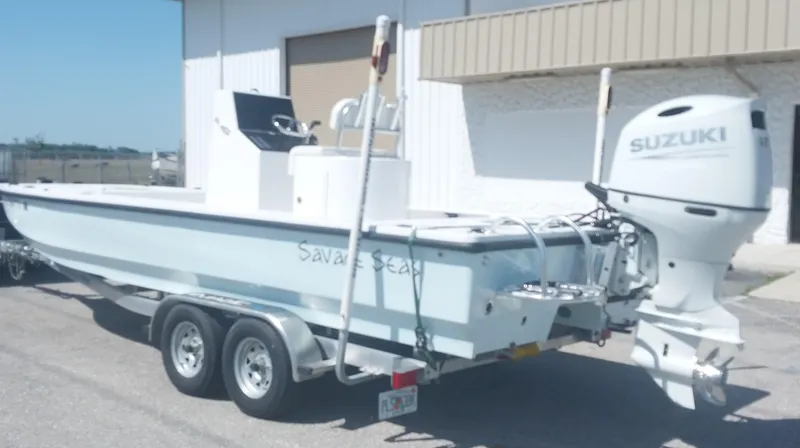 The Savage Seas flats boat is new to the market and is a very well thought out fishing machine. For a 22' boat it has a running draft of 5" and can really take you into the skinny and flats.