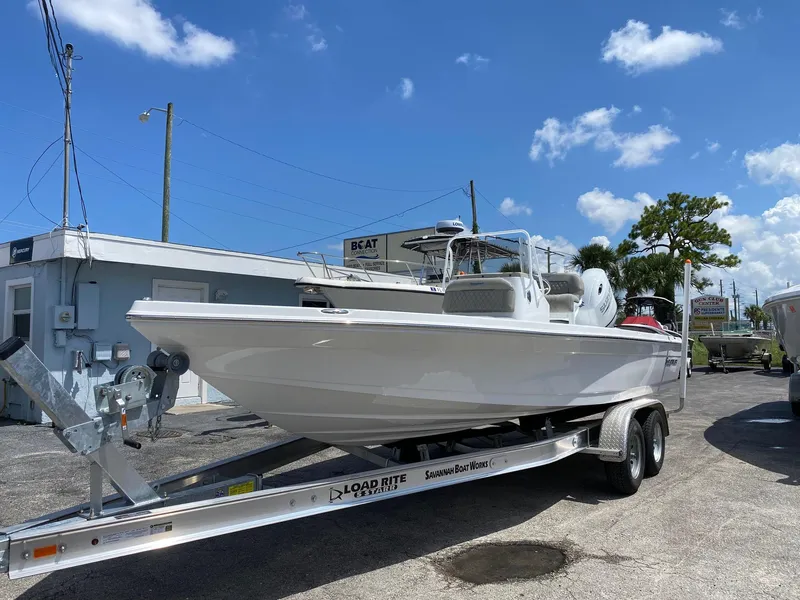JUST IN 2024 SAVANNAH 220 IS POWERED BY A 200 SUZUKI WITH TANDEM AXLE TRAILER INCLUDED!