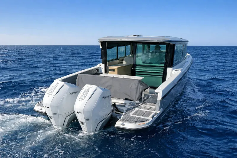This 2025 Saxdor 320 GTC presents a rare opportunity to own a near-new, highly sought-after European sport cruiser with only approximately 30 hours on twin Mercury 300 HP outboards. Located in Newport Beach and equipped with joystick piloting (JPO), this boat delivers an exceptional blend of performance, versatility, and modern Scandinavian design.