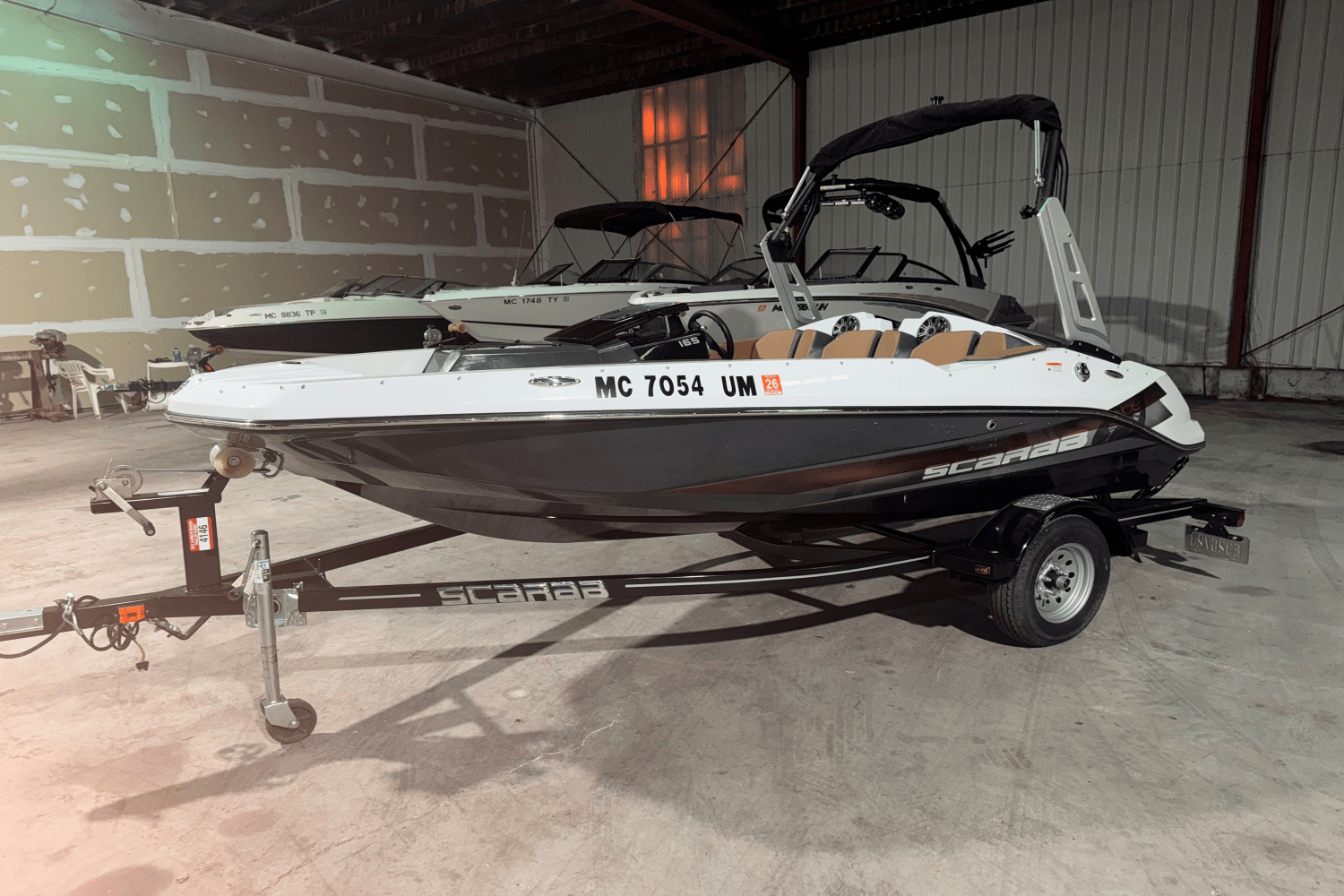Easy Ownership: The 2021 Scarab 165 Impulse comes with a standard lifetime hull structural warranty, 5-year osmosis warranty, and 3-year component warranty, offering peace of mind. It also includes a custom-fit powder coat trailer.