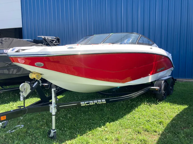 2024 Scarab 215 finished in Crimson Red and White. Brand new arrival. Powered by twin jet, Rotax 230 HP motors. Prep, DMV and Tax at additional charge. Call us for details.