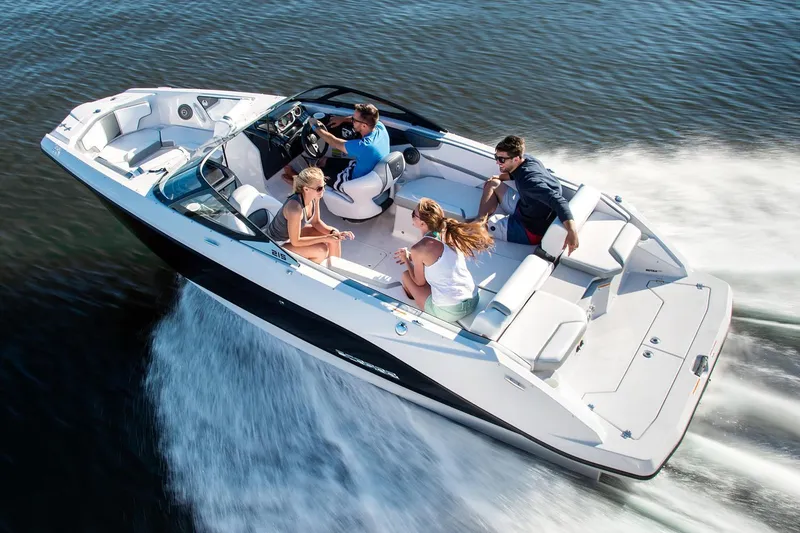 With Twin Rotax® jet engines at your disposal and a standard bimini top, the 215 G is ready for the party. Deep storage compartments and plush, notched seating will keep the interior clear and your crew in high spirits for day after day of Scarab fun.