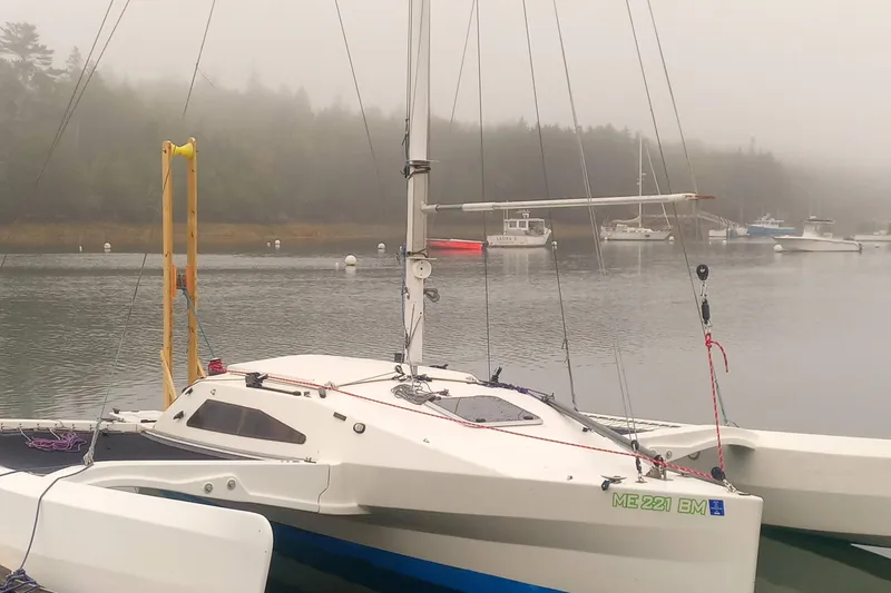 TRITIKI was competently built by an aerospace engineer. She is a very sweet boat, very solidly built, and quite fast. She folds easily for trailering. The cabin sleeps four making her a good weekender.
