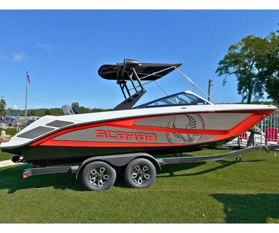 This sleek and powerful 2025 Scarab 235 LX is the perfect high-performance wakeboard boat that blends performance and versatility with luxury and comfort. Powered by twin 300 Rotax engines and equipped with a wakeboard tower, cockpit table, JL Stereo and more, this boat is built and ready for unforgettable days on the water.