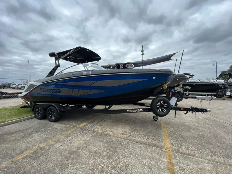 $50,000.00 off this New 2023 Scarab 255 Wake Edition with 600 hp, Touch screen dash, matting, impact graphic, Surf stream tabs, JL Audio Stereo