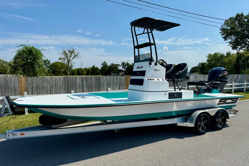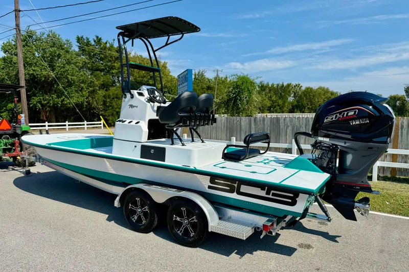 2026 SCB S24 being pushed by a Yamaha 250 SHO and is sitting on an upgraded McClain tandem axle aluminum trailer. This boat is rigged with the following options and accessories.