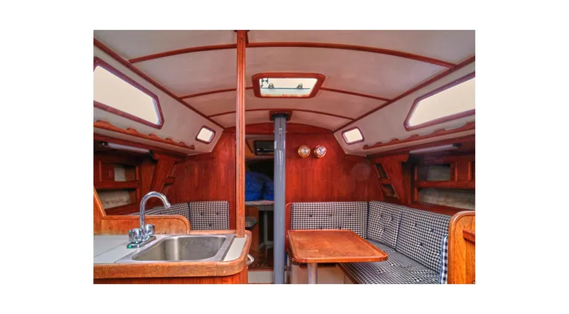 Designed by Hein Driehuyzen, and built by Scepter Yachts Ltd. in Vancouver, thirty-six Sceptre 36 sailboats were completed between 1978 and 1984. This was the peak period when there were several small select builders, producing the best quality sailboats they could, before the oil crisis in the mid-80s. The most interesting and thorough review of the Sceptre 36 is in The Best Boats to Build or Buy by Ferenc Máté. With 10 pages of copy and drawings, it's well worth a read! The Sceptre was a better boat than Driehuyzen's earlier and lighter Crown 34, longer, deeper, with more ballast for the taller rig. The hull is solid fiberglass and the deck and coach-house are fiberglass with balsa core. Supported by four shrouds per side with rod rigging, the tapered aluminum mast on Athena has been repainted with nice light grey epoxy paint. Athena has good North sails, a Lewmar windlass, and No. 44ST primary and No.30 halyard and trim winches. Many Scepters were equipped with a Pathfinder Diesel with Bosch Fuel Injection System. Built to last, the Pathfinder has more bearing surfaces than any other marine diesel. The interior is light with many thoughtful woodwork details; a modest liquor cabinet without stained glass, and a salon settee that slides out to make a double berth. There are little details like corner gaps in table fiddles for wiping the crumbs off the table and a pass-through hatch to the trash can in the lazaret. Like many boats of the day, you could load the ice box or reach a beer from the cockpit. This strong classic racer/cruiser is a straightforward sailing machine, a simple great sailing boat that can take you anywhere locally or beyond the Salish Sea. Note: I'm told his boat was ordered by a doctor in Bellingham who wanted all the waterline he could get, so this Secptre 36 has a "normal" racy transom, not the usual Driehuyzen chopped one. It's pretty too! Nobody builds boats like this anymore! Come see Athena, and make an offer. With the recent price drop, someone is going to get a great sailing boat. . .