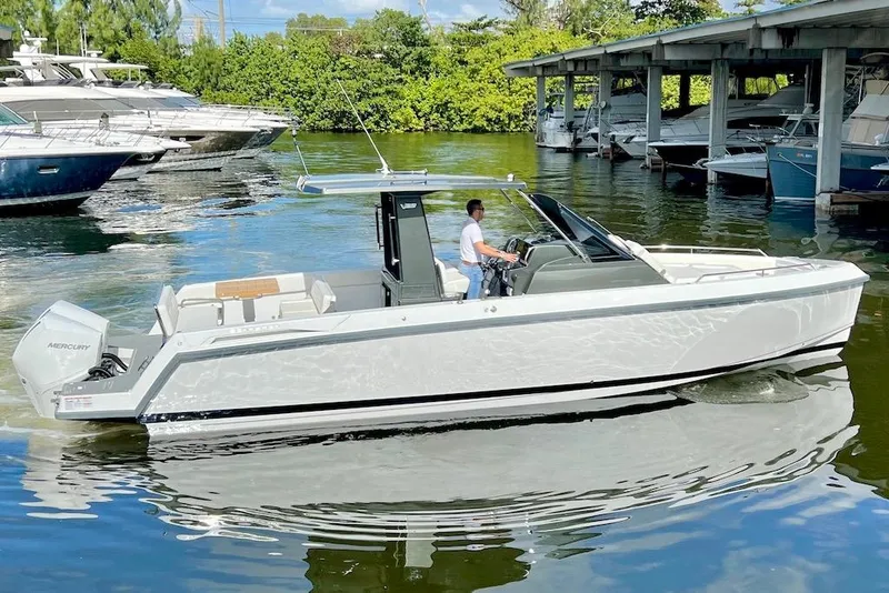 With sleek lines and a commanding presence, the V33 is built for those who expect more from their time on the water. Twin outboards launch you into exhilarating speed with the agility to handle Cape Cod currents or tight harbor entries. The open cockpit design, with premium upholstery and elegant finishes, invites effortless entertaining-from lobster rolls under the sun to sunset cocktails off Newport.