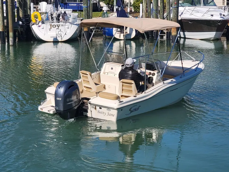 2021 Scout 175 Sport Dorado, Well cared for one owner Center console With 90 HP Yamaha motor, Low hours, Stainless prop, , hydraulic trim tabs, Dual batteries with switch, bimini, console / leaning post / motor covers, live well, dual captain's chair, Garmin GPS, Fushion sound system, comes with swing tongue trailer to fit easily in your garage and much more... For more information or to schedule a time to see this vessel call 941-485-9500 or text 913-485-4172 or email Dave@cmcboats.com. Financing available including those with less than perfect credit. To see a Video Sea Trial of this vessel go to: https://youtu.be/0ecJW3Fc8Dc