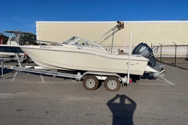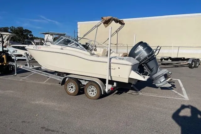 Pre-Owned 2005 Scout 205 Dorado, Yamaha F200TXRD with 573 Hours and **Does Not Have Exhaust Corrosion Issue**, Just Fully Serviced Including Water Pump Kit, 2021 Wesco Tandem Aluminum Trailer, White Hull Color, Bimini Top, Bow/Cockpit Snap On Covers, Ski Tow Bar, Garmin Depth Finder, New Stereo, Battery Switch, Swim Platform, Ready for Delivery