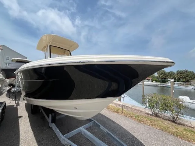 The 215 XSF is built on Scout's revolutionary fuel saving NuV3 hull design, while the deck offers ample standard amenities for everything from serious fishing to comfort cruising. Built with 100% hand-laid fiberglass, the boat boasts a wide comfortable beam of 8'6" with an overall length of 21' 6"! A notable standard feature onboard the 215 includes not only the forward seating in the bow, but also a forward sun lounge/coffin box complete with a cushion.