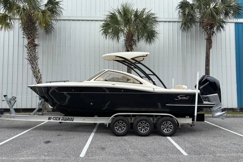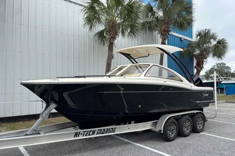 Our 240 Dorado showcases our NuV3 fuel efficient hull technology which affords you tremendous savings throughout your ownership. Loaded with family-friendly fishing features, this model comes standard with full transom swim platforms with synthetic teak foam pad and ladder, a port side fold down seat with folding table, fully cushioned bow seating and a stern seat in the transom among other features. An optional fiberglass hardtop is also available.