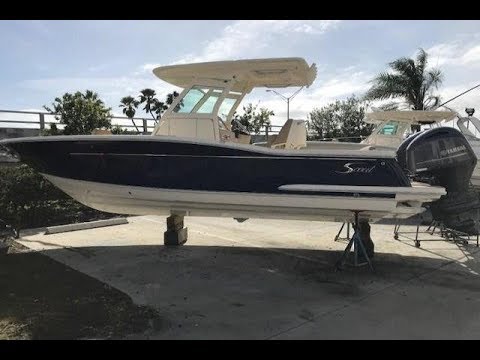 This is a meticulously maintained one owner 2018 Scout 255 LXF equipped with twin low hour (200) Mercury 150 four stroke engines. Once stepping aboard you will notice a large leaning post with livewell, fiberglass helm with garmin electronics and a perfectly situated flip up bolster. The console is encased in tempered glass on three sides with ventilation above. In the console there is a marine head and electrical access. At the bow there is a fiberglass molded console seat as well as bow seating with back rests and a flip down table. Trailer included.