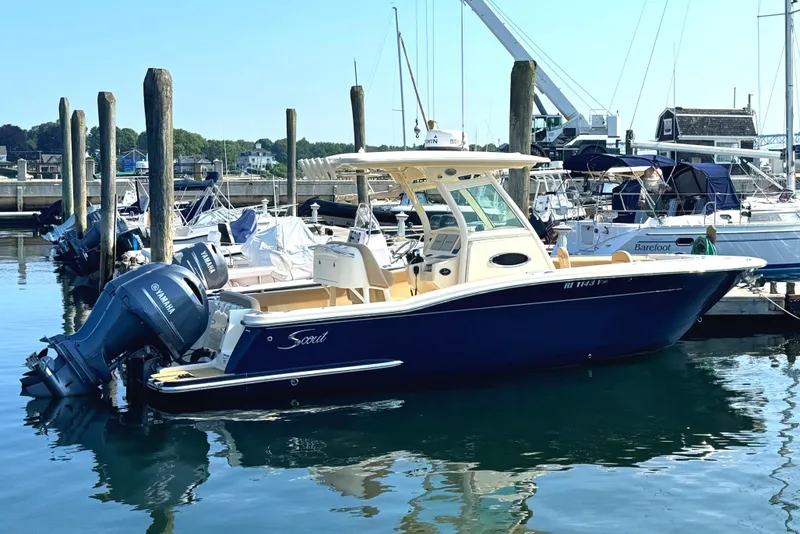 This one owner 2023 Scout 255 LXF was purchased originally here at Ocean House Marina in 2023. Powered with twin digitally shifted Yamaha F150XCA's 2.8 liter engines with just 50 hours. This is a turn key boat, in the water, and ready to go for the season. All maintenance has been done inhouse by Yamaha Certified Technicians.