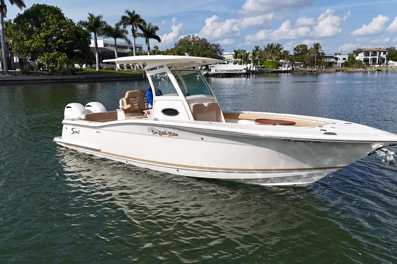 This 2019 Scout 275 LXF is fully loaded and ready for its next owner! Powered by a pair of Scout White Yamaha 200 hp outboards with ONLY 176 HOURS, this versatile center console is prepped and perfect for family outings or blue water adventures. Features include a bow teak table, Edson steering wheel, Garmin 7612 with B60 transducer, overboard discharge, ample fish boxes, windlass, and so much more!