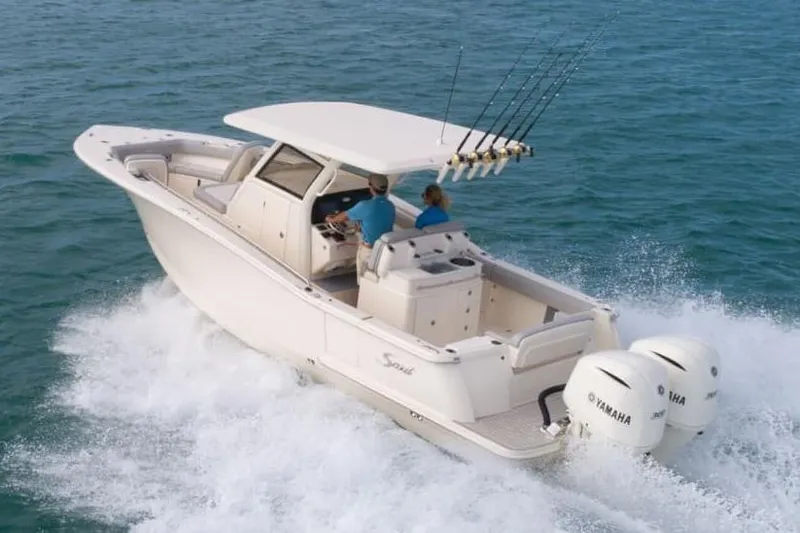 Step aboard the only 30-footer in its class with a console berth down below and optional air conditioning: our 305 LXF. Enjoy the convenience of a removable bow table while enjoying your favorite music on the six-speaker sound system with optional subwoofer and amplifier. Power the model on and off with the simple push of a button from your remote key fob. Comfort, style, and performance are all standard and ready for you to enjoy whether it's offshore, or a date night excursion to your favorite waterfront restaurant.