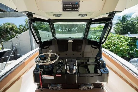 The Scout 330 LXF is the perfect meld of superior craftsmanship and ingenuity. Smartly-designed and ready for entertaining, cruising, and fishing. Ample storage throughout, plush seating options, and an inner console berth below with an electric marine head and overhead lighting. It comes loaded with standard features: Powder Coated Patented T-Top Hardtop w/ Full Windshield, (6) Rocket Launchers & LED Rope Lighting, Leaning Post w/ 3 Tackle Drawers Port Side, Trash Unit Stbd Side, 65 Quart YETI Slide-Out Aft Cooler (not shown here), Sink Port Side, Countertop, Cutting Board Starboard Side Countertop, Fiberglass Cooler Box Countertop and Twin Bucket Helm Seats w/ Armrest Box, Electric Marine Head w/ 12 Gallon Holding Tank w/ Overboard Discharge & Dockside Pump Out. Call for More Details!