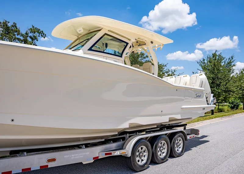 Step into luxury, innovation, and performance with the all-new 2026 Scout 357 LXF. Designed for the discerning boater who demands both offshore capability and upscale comfort, the 357 LXF delivers a seamless blend of high-performance fishing functionality and refined yachting features. Outfitted with triple Mercury V10 400hp outboards, this luxury center console commands the water with a top-tier power-to-weight ratio, exceptional handling, and exhilarating speed.