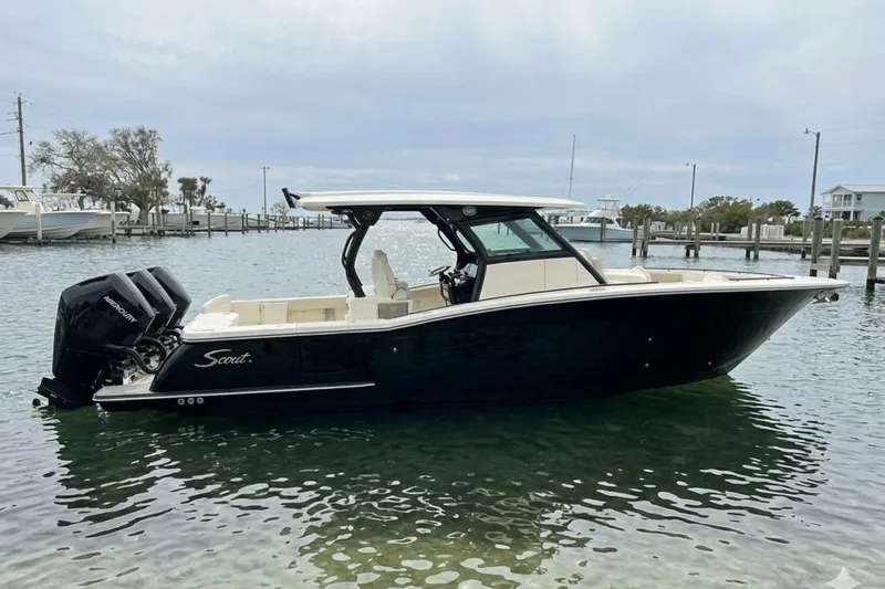 Step aboard the pinnacle of coastal sportfishing and luxury cruising with this breathtaking 2026 Scout 377 LXF. Outfitted in the striking Midnight Edition with a full black hull, this vessel seamlessly blends aggressive styling with refined elegance. Powered by Triple Mercury 425 V10 with Joystick and Sky Hook, it delivers heart-pounding performance. An array of cutting-edge standard and optional features ensures your time on the water is nothing short of extraordinary.