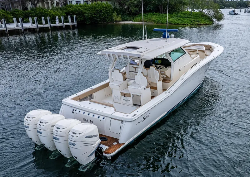 This stunning fully loaded 2019 Scout 420 LXF has been lightly used and is equipped with all the desired options an owner would want. These Center Consoles are a perfect hybrid for an avid fisherman and a luxury comfort boater. The sleek design of the 420 LXF is a head-turner wherever she goes and this specific boat has been very well maintained cosmetically and mechanically. The original owner has kept her well-maintained with an open checkbook and has low hours on the Quad Mercury Verado 350s. Looking for her new owner, bring all offers