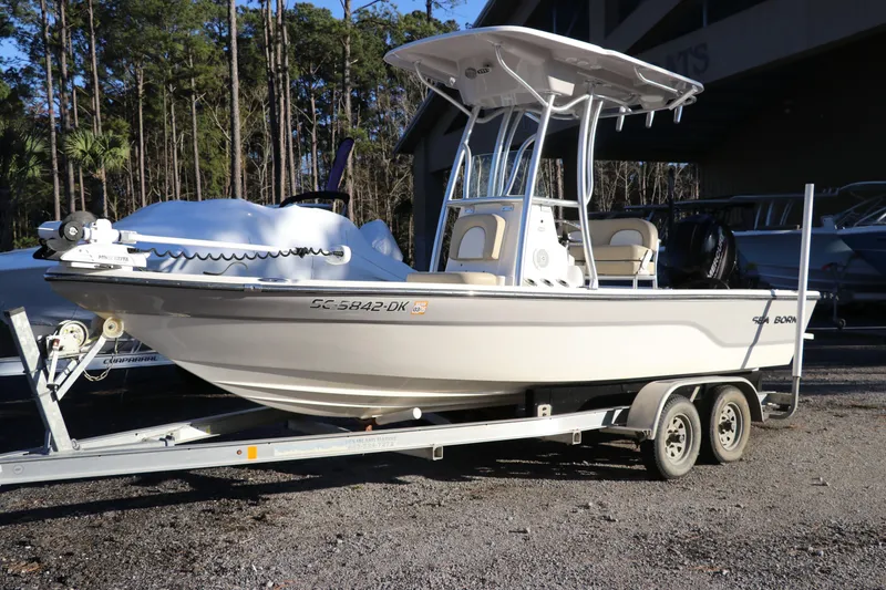 Introducing the remarkable 2019 Sea Born FX21 Bay, a stunning example of a used Bay Boat that combines performance and style. With an overall length of 20.5 feet, this vessel is designed for agility and ease of maneuverability on the water. The deep Vee hull shape, crafted from durable fiberglass, ensures a smooth ride even in choppy conditions. Powered by a reliable 2019 Mercury F150XL outboard engine, this boat boasts a stainless steel 3-blade propeller, delivering impressive performance with 497 hours of use. Its thoughtful design includes a center engine location for optimal balance and handling. Ideal for both fishing and leisure, the FX21 Bay is equipped to enhance your boating experience. With its sleek lines and robust construction, this boat is ready to take you on unforgettable adventures. Embrace the open water with confidence in this exceptional Sea Born model.