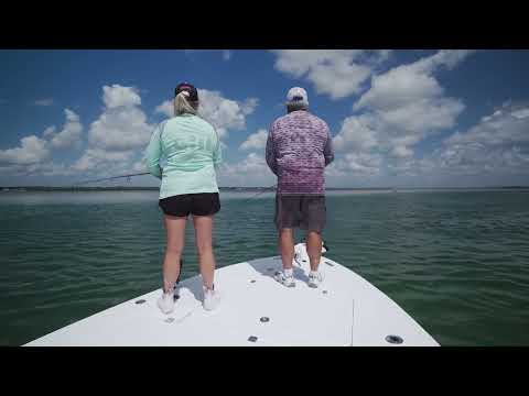 The LX24 measures 23'-9" and is both roomy and fun. Serving those looking for the sweet spot between "smaller" and "larger" center consoles, this 24-footer boasts dozens of standard features. Built from all-composite materials and more freeboard than our bay boats, your family and friends will enjoy fishing and play and simply taking in the view from the forward or rear lounges. Boat is equipped with a Suzuki DF300, Power Poles, twin Garmin 12" plotters, Fusion Speakers, and includes Venture trailer.