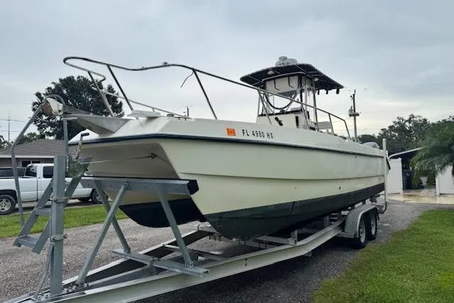 Don't miss out on this clean used 25ft Power Catamaran. Current owner has done all of the hard work on this classic catamaran. New electronics and wiring, newer Upholstery, New Dash Panel, Thru Hull Transducer, Custom Dive Ladder, Dual Batteries w/switch, Upgraded Stereo System, Custom Livewell, Eisen Glass, Aluminum Trailer and Much Much More! Motors have higher hours but they have always been maintained and are running strong. She is ready to turn the key and go fishing!