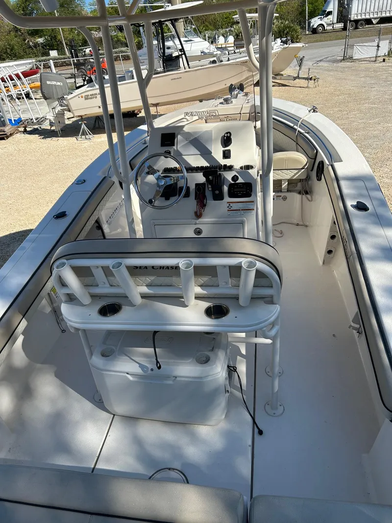 22 HFC is an affordable, versatile and durable center console designed for family, fishing and fun. The innovative 22 HFC comes standard with angler-friendly features, like stainless steel fold-down cleats and flush-mounted rod holders, under-gunnel rod storage with LED lighting, and a 25-gallon stern baitwell. For families who need plenty of space for adventure, the 22 HFC features a roomy, comfortable bow seating area, a console front passenger seat and a stern bench seat. A popular upgrade option for the 22 HFC is the unique flip-up console with a step-down changing station.