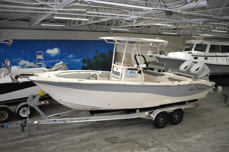 Diamond Marine, a Sea Chaser dealer of Connecticut. 2023 24 HFC, Gray sport stripe, twin Suzuki 150hp four stroke white motors, digital. Financing available, local trades welcome. Call us with any questions or concerns by email or phone at 203 466-5384 and ask for Mark or Karl.